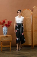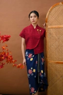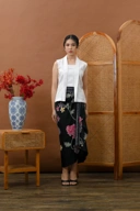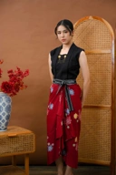 “Rok Lestari is a skirt with a unique design, combining Batik with Lurik as its ethnic accent. Available in various colors: blue, red, and black.”